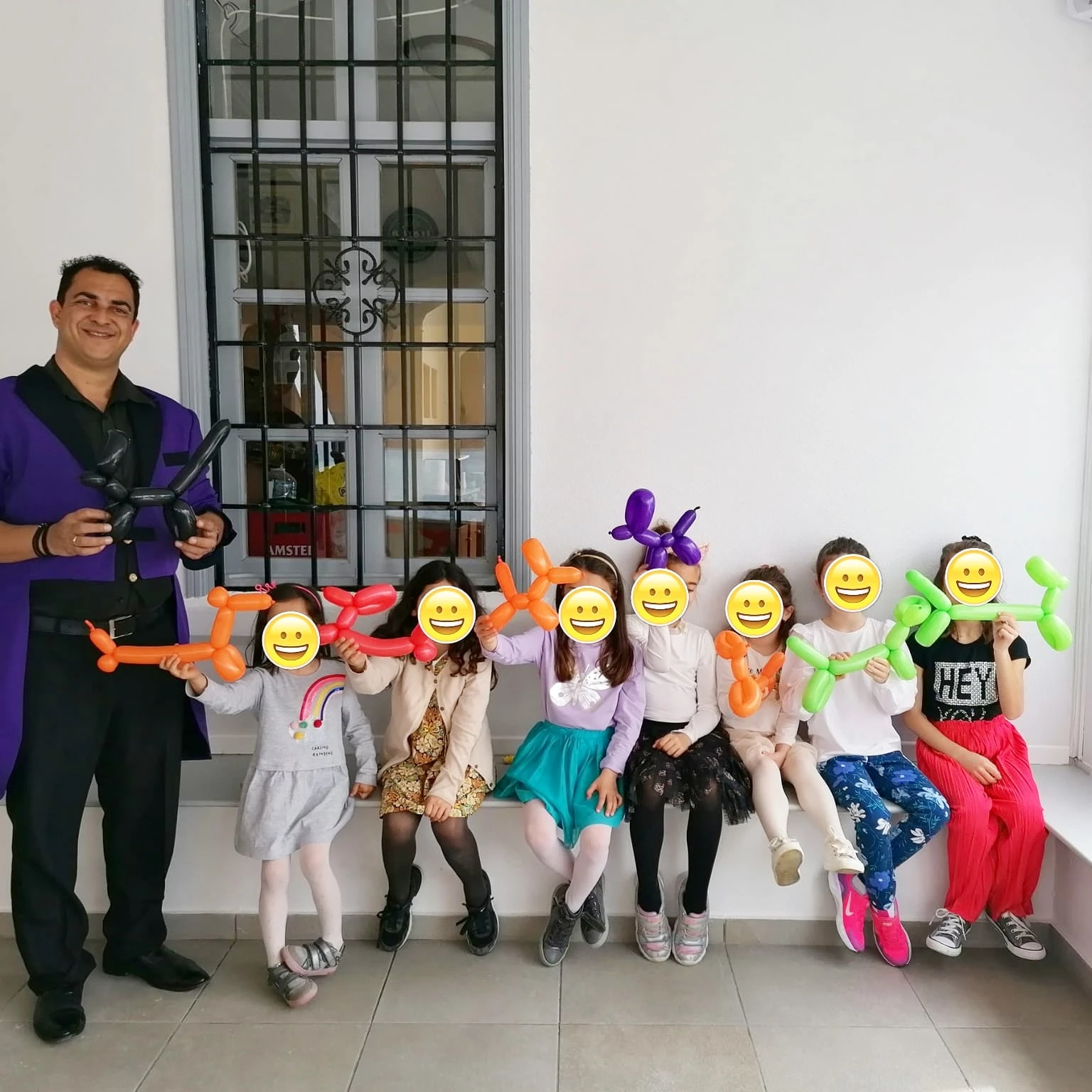 Ο εμψυχωτής έρχεται στο χώρο σας με ένα ωραίο γιλέκο και ένα μεγάλο καπέλο από μπαλόνια. Η παράσταση ξεκινάει με τον εμψυχωτή να κάνει εντυπωσιακά μαγικά κόλπα μόνο με μπαλόνια.