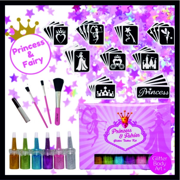 Δημιουργήστε φωτεινό και όμορφο κιτ τατουάζ με γκλίτερ πριγκίπισσας, Δημιουργήστε τα τατουάζ πριγκίπισσας και γκλίτερ της νεράιδας με το δικό σας κιτ στο σπίτι.