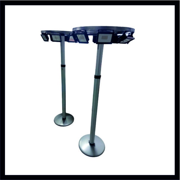 Δύο σετ 8 φώτων LED το καθένα τοποθετημένα σε έναν τηλεσκοπικό αυτόνομο στύλο. Κάθε λάμπα είναι 20 watt η καθεμία. Το ύψος αυτού του αντικειμένου αυξάνεται έως και 2,5 μέτρα. Είναι ιδανικά για φωτισμό σκηνής ή έκθεσης.