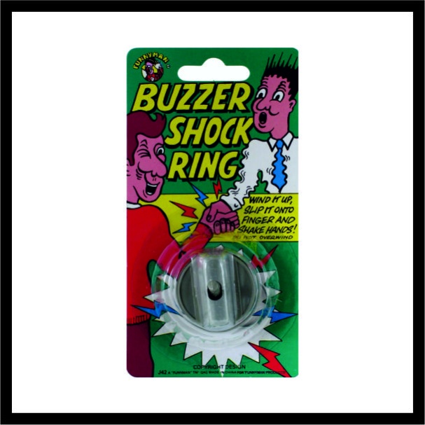 Άλλη μια κλασική φάρσα! Το σοκ δαχτυλίδι βομβητή προσφέρει μια εντελώς απροσδόκητη συνέπεια όταν κάποιος σας σφίξει το χέρι! Μια ισχυρή δόνηση που προσομοιώνει μια ηλεκτροπληξία και θα έχει το θύμα της φάρσας σας να τρέμει με τρόμο καθώς προσπαθείτε να κρατήσετε το χέρι σας στο χέρι! Η κουραστική δράση σημαίνει ότι αυτή η φάρσα δεν χρειάζεται ποτέ μπαταρίες.