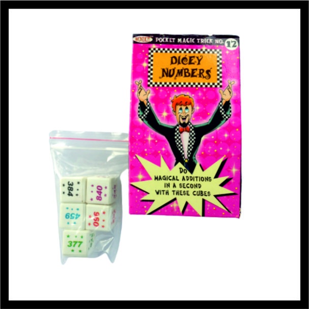 Αυτό είναι ένα σετ πέντε ζαριών, με 5 διαφορετικούς τριψήφιους αριθμούς σε όλες τις πλευρές κάθε ζαριού. Ο θεατής πετάει τα ζάρια και ο ερμηνευτής μπορεί αμέσως να αποκαλύψει το σύνολο των αριθμών πάνω από τα ζάρια. Υπάρχουν 1000 πιθανά σύνολα, ωστόσο ο ερμηνευτής μπορεί να αποκαλύψει το σύνολο των τυχαίων αριθμών που ρίχνονται σε μια στιγμή. Εύκολο να το κάνετε με τα ειδικά ζάρια και τις οδηγίες που παρέχονται.