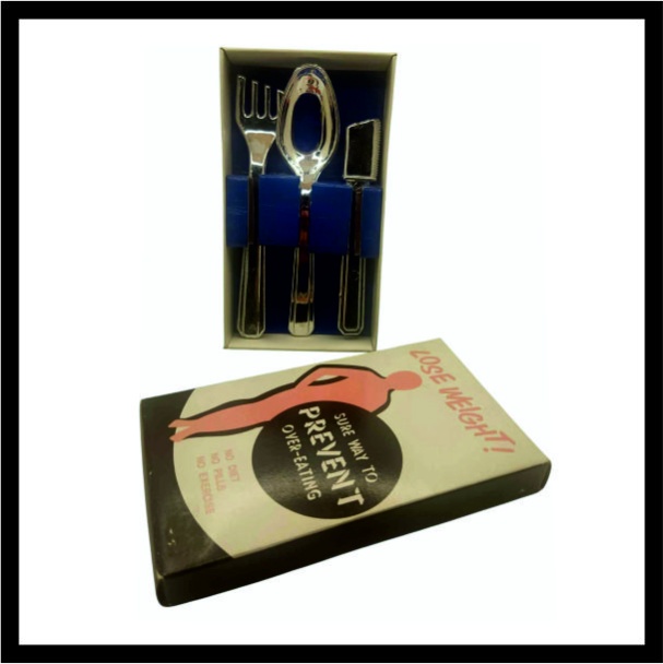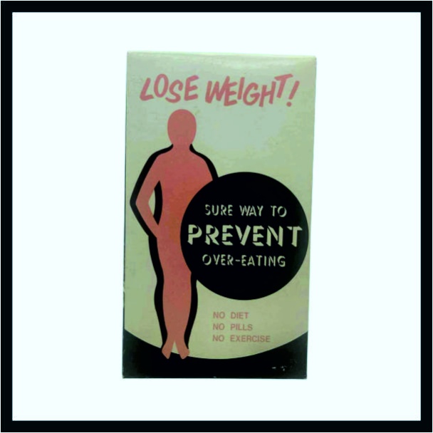 Αυτό είναι ένα καινοτόμο δώρο φίμωσης του 1965 "Lose Weight! - Sure Way to Prevent Over-Eating" που κατασκευάστηκε από την Fishlove. Δεν είμαι σίγουρος ποιος θα έβρισκε διασκεδαστικό αυτό το δώρο "gag". Μέσα στο κουτί έχετε ένα: