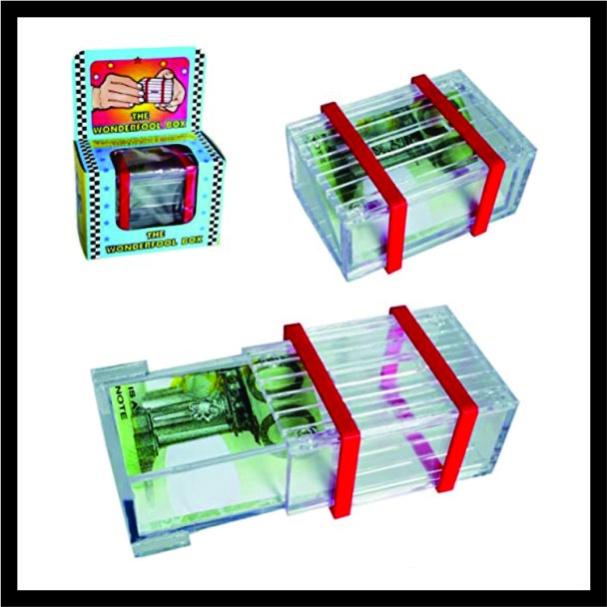Ο μάγος δανείζετε ένα χαρτονόμισμα και το τοποθετεί μέσα σε ένα διάφανο κουτάκι καλά σφραγισμένο. Η πρόκληση είναι ποιος από το κοινό θα καταφέρει να το ανοίξει και να πάρει το χαρτονόμισμα.