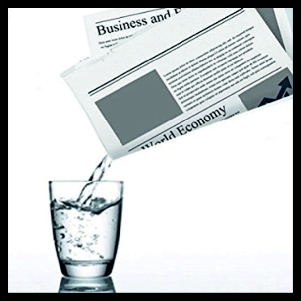 Ο μάγος παρουσιάζει μια κοινή εφημερίδα στο κοινό του από όλες τις πλευρές, στην συνέχεια παίρνει αδειάζει ένα ποτήρι με νερό μέσα σε αυτή, όμως το νερό δια μαγείας έχει εξαφανιστεί! Στην συνέχεια με μια κίνηση ο μάγος εμφανίζει ξανά το νερό στο ποτήρι από το οποίο προήλθε!