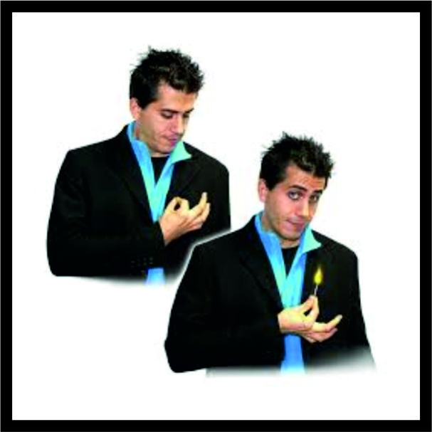 Ο μάγος δείχνει το χέρι του άδειο και αμέσως μετά, από κάτω από τον γιακά του σακακιού του, βγάζει ένα αναμμένο σπίρτο!
