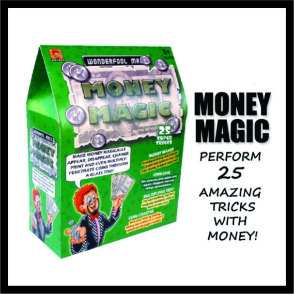 Περιλαμβάνει το Money Maker για την αλλαγή του λευκού χαρτιού σε χαρτονομίσματα, τη θήκη νομισμάτων για την εξαφάνιση των προϊόντων και την αλλαγή νομισμάτων, τον δίσκο πολλαπλασιασμού κερμάτων, το σουβέρ για τη διείσδυση ενός κέρματος μέσα από ένα ποτήρι κ.λπ.