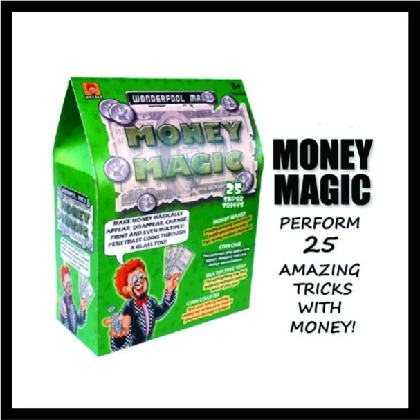 Εκτελέστε 25 εκπληκτικά μαγικά κόλπα με χαρτονομίσματα και νομίσματα με αυτήν τη μαγική τσάντα Wonderfool! Κάντε τα χρήματα να εμφανίζονται, να εξαφανίζονται, να αλλάζουν, να πολλαπλασιάζονται! Κόλπα για διασκέδαση, και όχι για χρήση ως πρόγραμμα γρήγορου πλουτισμού! Αυτή η δροσερή μαγική τσάντα περιέχει: