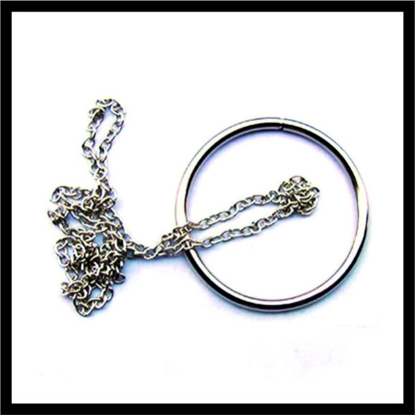 Ο δακτύλιος έχει διάμετρο 5 cm και πάχος 3 mm. Η αλυσίδα είναι κλειστός βρόχος μήκους 35 cm.