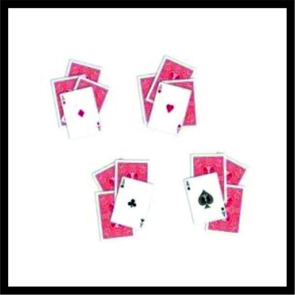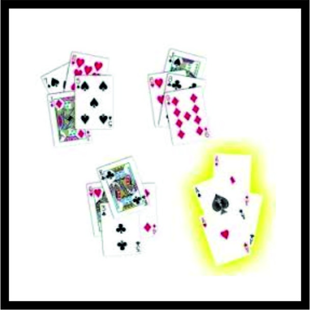 Ο μάγος τραβάει τους 4 άσσους από την τράπουλα και προσθέτει 4 αδιάφορα φύλλα σε κάθε άσο σχηματίζοντας 4 στοίβες, το καθένα με έναν άσο και τρία αδιάφορα φύλλα. Ένας κάθε φορά οι άσοι εξαφανίζονται από τα τρία πακέτα και ενώνονται όλα στο 4ο πακέτο. Παρέχονται οι απαραίτητες ειδικές κάρτες και σαφείς οδηγίες στα αγγλικά.