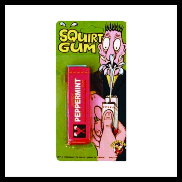 Θέλατε πάντα να ρίξετε νερό στο πρόσωπο κάποιου όταν του προσφέρετε τσίχλα; Τώρα μπορείς. Μια υπέροχη υδάτινη φάρσα που δεν παραλείπει ποτέ να εκπλήξει το άτομο στην άλλη άκρη! Το μόνο που έχετε να κάνετε είναι να γεμίσετε την τσίχλα Squirt με νερό ή ένα υγρό της αρεσκείας σας, να παρασύρετε το θύμα της φάρσας σας με την υπόσχεση μιας νόστιμης τσίχλας μέντας!