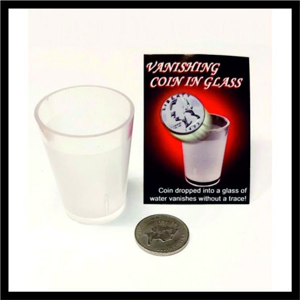 Ένα δανεικό κέρμα εξαφανίζεται τη στιγμή που το ρίχνουν σε ένα ποτήρι νερό. Το Vanishing Coin in Glass είναι ένα εύκολο θαύμα. Η μαγεία μπορεί να γίνει από έναν εθελοντή χρησιμοποιώντας το δικό του κέρμα ακόμα και όταν βρίσκεστε στην άλλη πλευρά του δωματίου! Παρέχουμε όλα όσα χρειάζεστε, συμπεριλαμβανομένου ενός σκληρού πλαστικού ποτήρι για άμεση εκκίνηση. Μπορεί να χρησιμοποιηθεί οποιοδήποτε ποτήρι.
